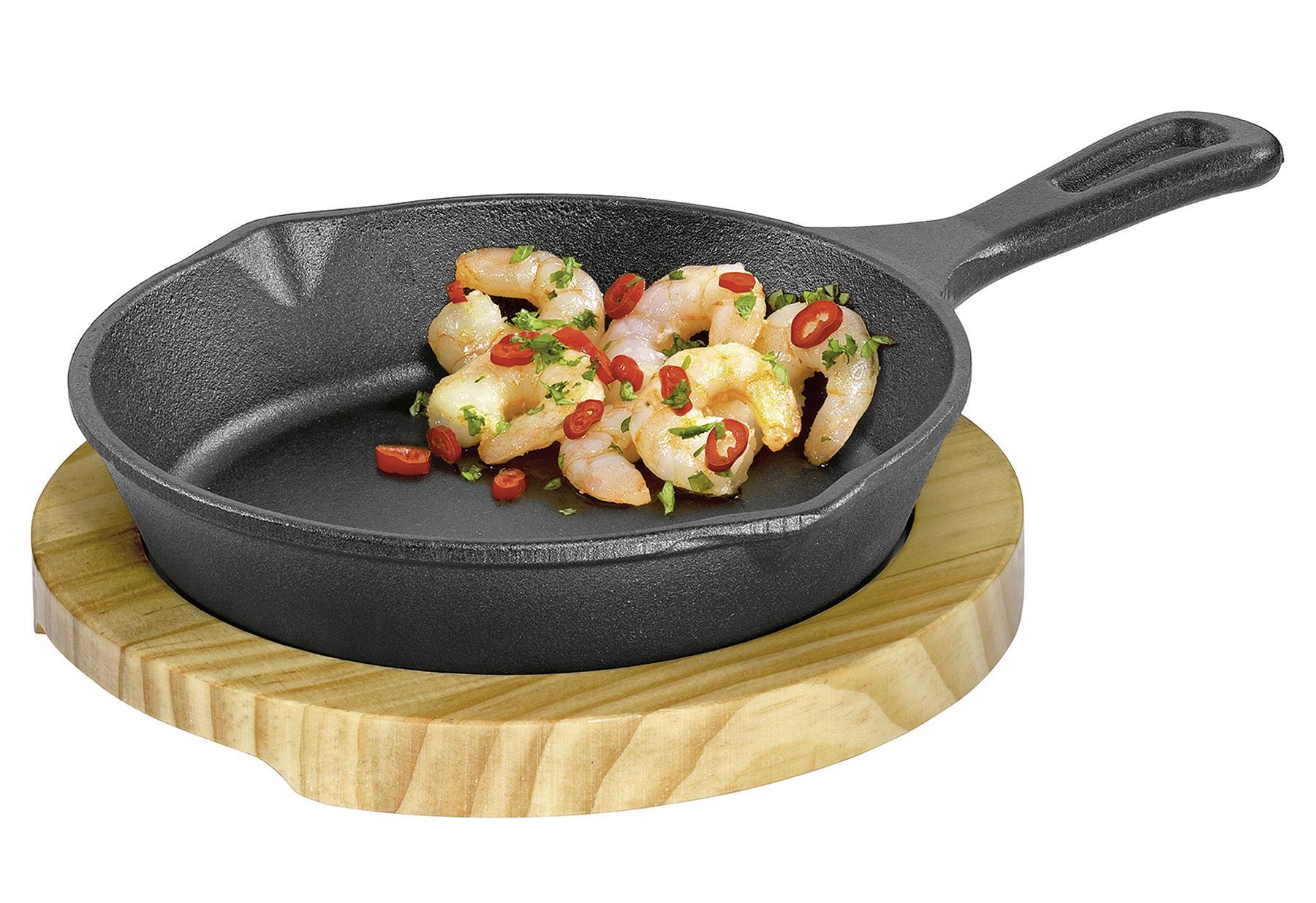 KÜCHENPROFI Servierpfanne mit Stielgriff und Holzbrett BBQ 26x18x6cm