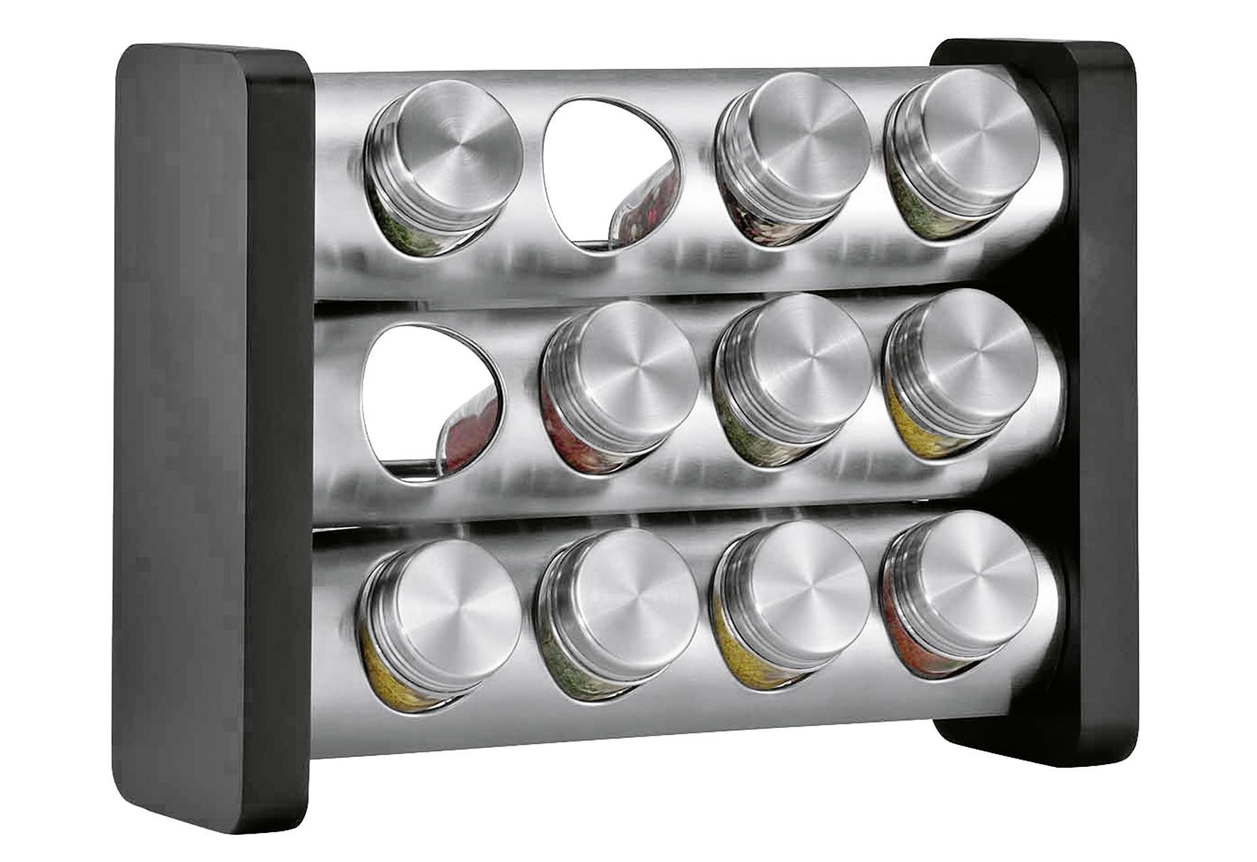 KÜCHENPROFI Gewürzständer mit 12 Gläsern schwarz rechteckig